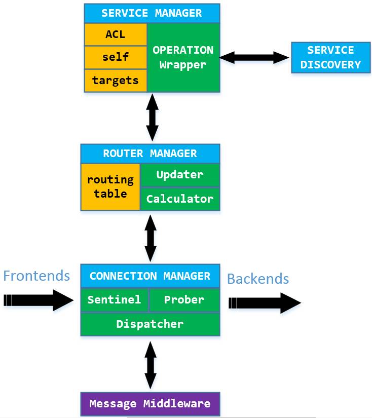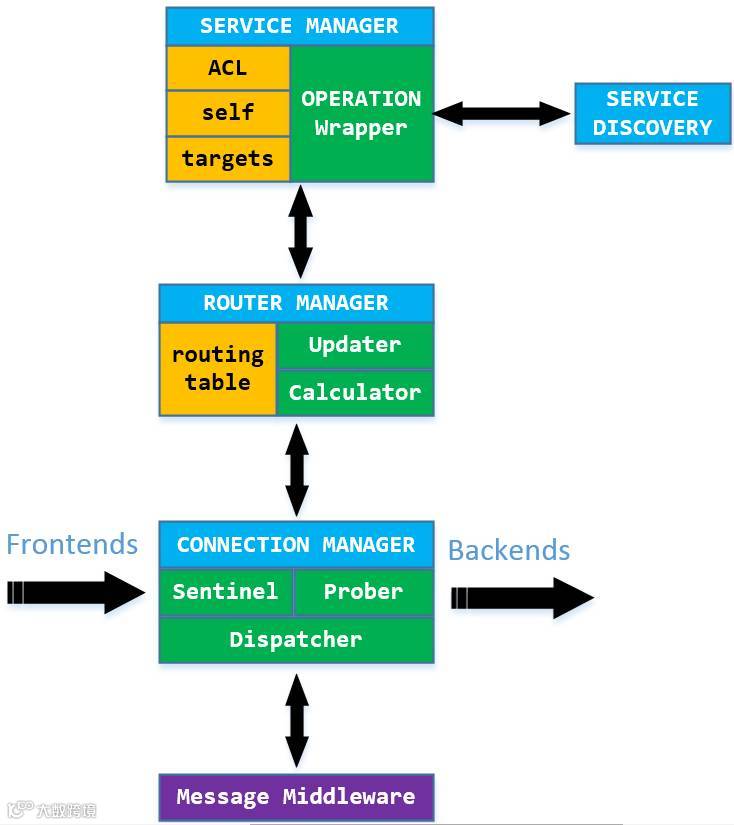 管理 Frontends 即前端请求进入的连接,和 Backends 即向后端主动发起的连接。Backends的目标来源于 Service Manager。