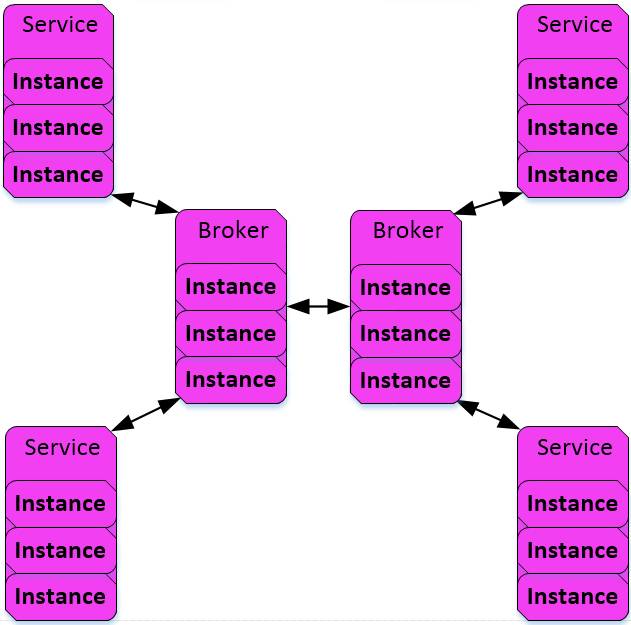 对于一个内部聚合的子系统,可能包含N个服务,这些服务之间相互存在较强的交互行为。如果使用无Broker模式可能有两个问题:链路过多:通信层的内存占用较大;运维维护困难;服务没有解耦,直接依赖于对端的存在;