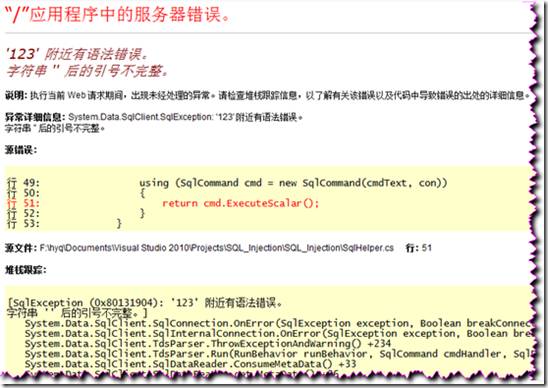 所谓SQL注入式攻击,就是攻击者把SQL命令插入到Web表单的输入域或页面请求的查询字符串,欺骗服务器执行恶意的SQL命令。在某些表单中,用户输入的内容直接用来构造(或者影响)动态SQL命令,或作为存储过程的输入参数,这类表单特别容易受到SQL注入式攻击。
