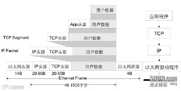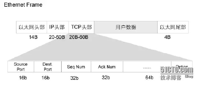 上图为传输层数据封装。如图所示的传输层使用的是TCP协议
