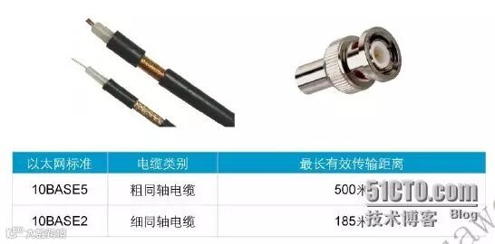 同轴电缆是一种早期使用的传输介质,同轴电缆的标准分为两种,10BASE2和10BASE5.这两种标准都支持10Mbps的传输速率,最长传输距离分别为185米和500米。10BASE5和10BASE2的同轴电缆使用的同轴电缆的直径分别为9.5mm和5mm,所以前者又称为粗缆,后者又称为细缆。一般情况下,10BASE2同轴电缆使用BNC接头,10BASE5同轴电缆使用N型接头。目前,10Mbps的传输速率早已不能满足目前企业网络需求,因此同轴电缆在目前企业网络中很少应用。