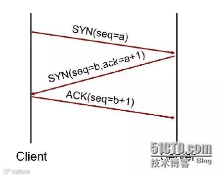 1、请求端(通常也称为客户端)发送一个SYN段表示客户期望连接服务器端口,初始序列号为a。