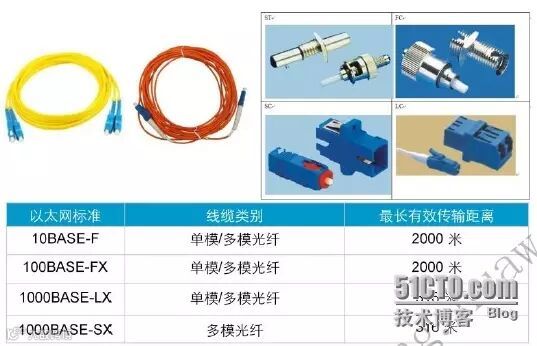 双绞线和同轴电缆传输数据时使用的是电信号,而光纤传输数据时使用的是光信号。光纤支持的传输速率包括10Mbps,100Mbps,1Gbps,10Gbps,甚至更高。根据光纤传输光信号模式的不同,光纤又可分为单模光纤和多模光纤。单模光纤只能传输一种模式的光,不存在模间色散,因此适用于长距离高速传输。多模光纤允许不同模式的光在一根光纤上传输,由于模间色散较大而导致信号脉冲展宽严重,因此多模光纤主要用于局域网中的短距离传输。光纤连接器种类喝多,常用的连接器包括ST,FC,SC,LC连接器。