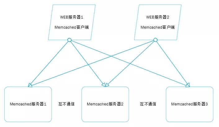Memcached实现分布式缓存,缓存服务器之间是互不通信的,也就是我们可以方便的通过增加Memcached服务器对系统进行扩展。