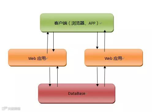 一个初建的网站往往用户群都是很小的,最简单的网站架构就能解决实际的用户需求,当然为了保证网站的稳定性和安全性,我们会把网站的应用部署到至少两台机器上,后台的存储使用数据库,如果经济实力允许,数据库使用单台服务器部署,由于数据是网站的生命线,因此我们常常会把部署数据库的服务器使用的好点,这个网站结构如下所示: