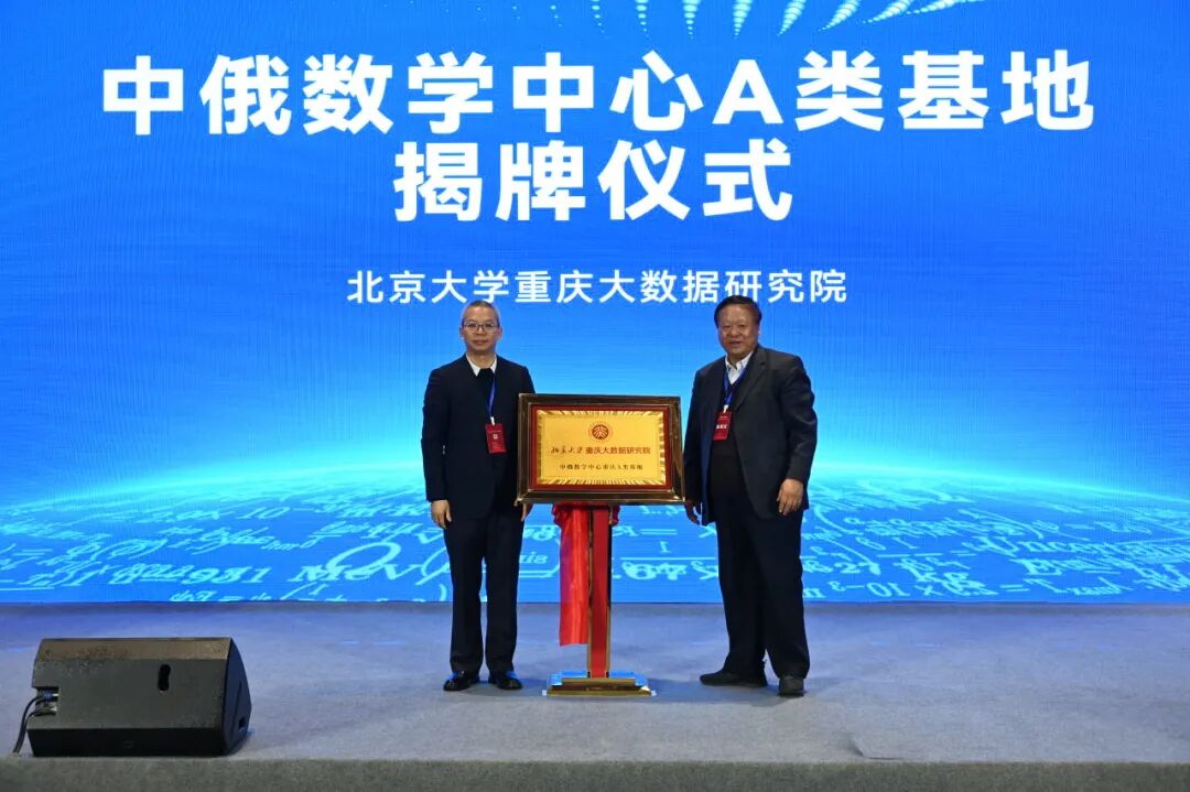 论坛期间,中国科学院院士、中俄数学中心主任、北京大学博雅讲席教授张继平与胡俊教授共同为北京大学重庆大数据研究院“中俄数学中心A类基地”揭牌。该基地将聚焦国家战略需求与国际科技前沿,在数学核心理论与关键应用领域攻关发力,并依托中俄数学中心的优势资源,重点推进高水平科研平台建设、重大项目合作和人才交流培养,为提升我国数学原始创新能力提供重要支撑。