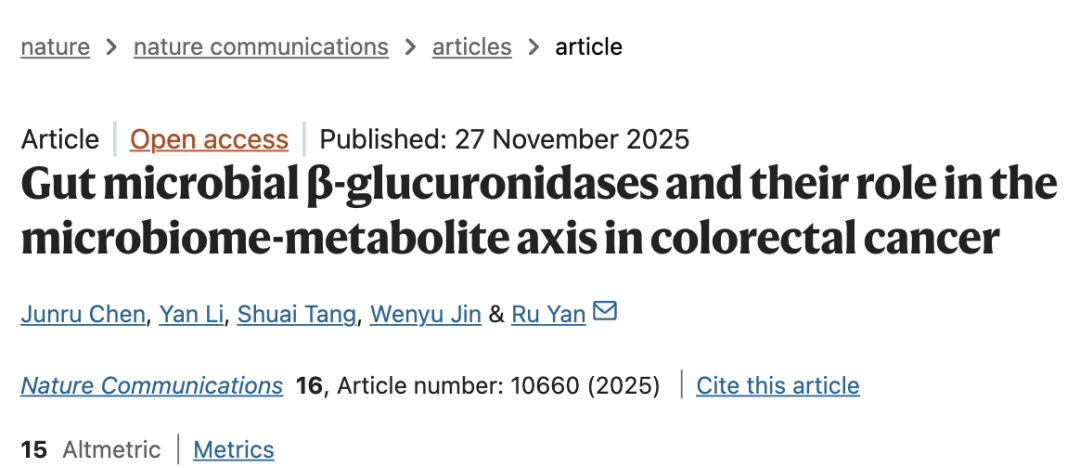 Chen, J., Li, Y., Tang, S. et al. Gut microbial β-glucuronidases and their role in the microbiome-metabolite axis in colorectal cancer. Nat Commun 16, 10660 (2025). https://doi.org/10.1038/s41467-025-65679-y