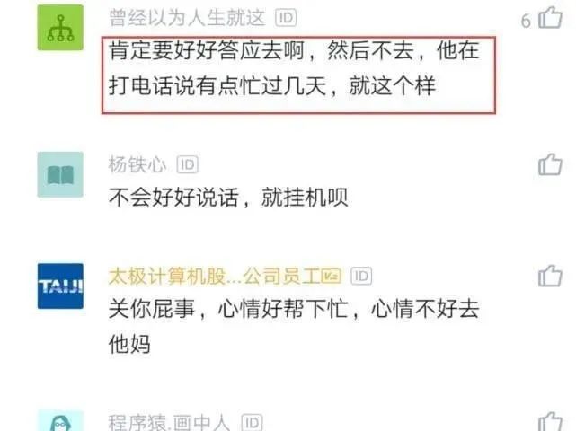 还有网友说:你可以先答应回去讲代码,约好时间之后不去,等领导再给你打电话时,你就说现在很忙,反正就是拖着,领导也拿你没有任何办法。