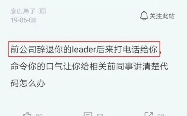 原来这个程序员在上家公司做了 4 年多,后来公司因为各种原因辞退了很多员工,其中也包括这个程序员。当该程序员离职 12 天的时候,突然就接到了前领导的电话,他在电话中要求员工回公司把代码讲清楚。而且前领导并不是很客气的语气,而是用一种命令的方式。