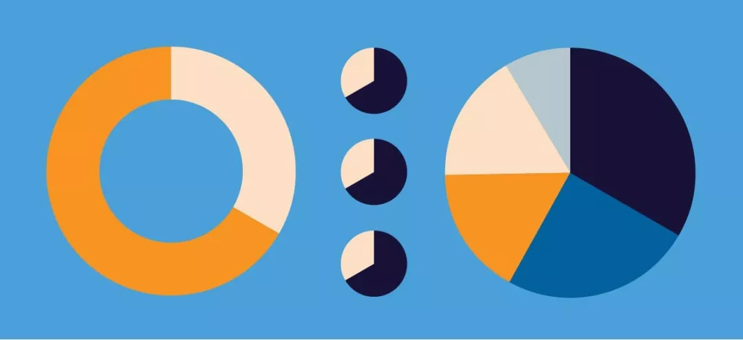 圆图是被最广泛使用的数据可视化形态之一。圆图包括饼图(实心)和圈图(中空,周边为圆形数据条)。