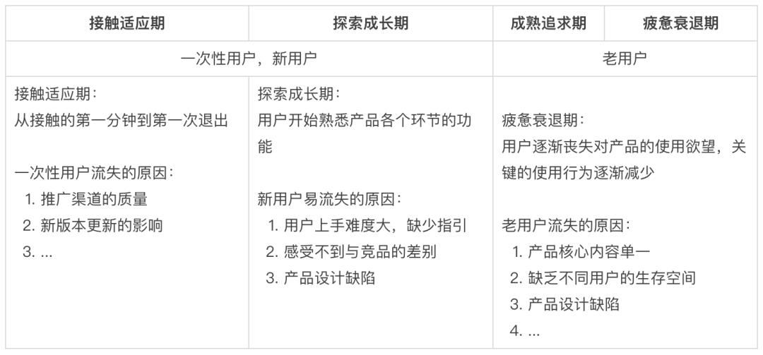 不同阶段的流失,有不同的流失原因: