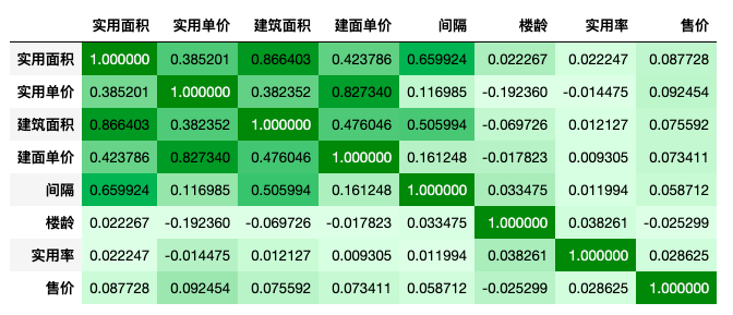 从相关系数表和回归图来看,间隔(即居室)和楼龄都与香港二手房房价无明显的相关性。实用面积与房价具有较强的正相关性,一般来说,人们在看房子时看到的面积是建筑面积,但却不是实用面积。套内建筑面积=套内使用面积+套内墙体面积+阳台面积,而实用面积就是套内使用面积。另外,实用率与房价也无相关性,这与大部分人的感性认识存在偏差。