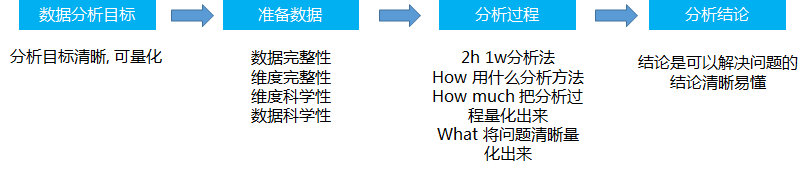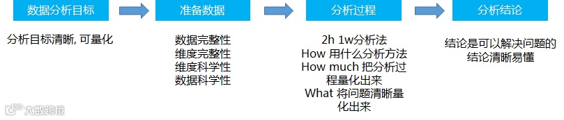 首先我们要知道我们要解决的问题是什么, 然后就想我们这些问题大概需要那些数据, 然后再去寻找对应的数据, 然后根据专业的分析方法, 分析出结论可以解决问题, 这就是一个数据分析的过程
