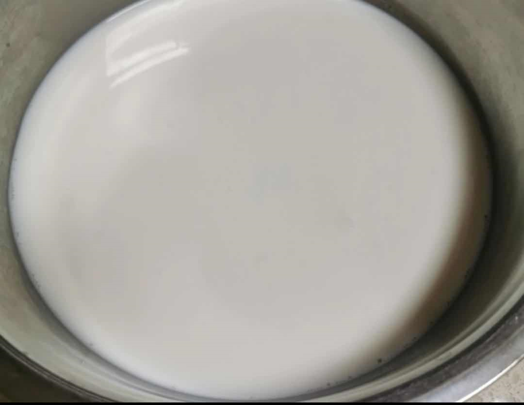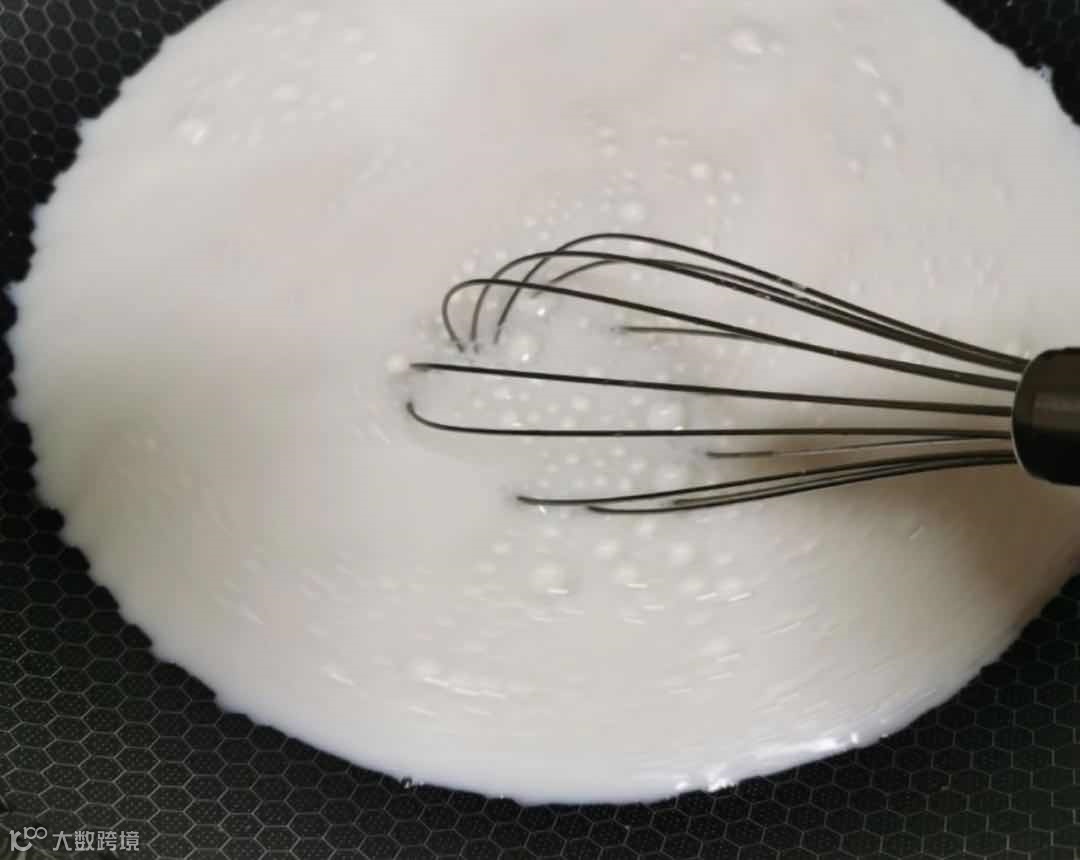 搅拌好以后, 将搅拌好的奶糊倒入到平底锅中搅拌, 一定要搅拌均匀后开小火, 继续搅拌, 这里一定是要小火, 不然底部容易焦, 这里也是数据分析需要借鉴的地方, 要有足够的耐心的去慢慢挖掘