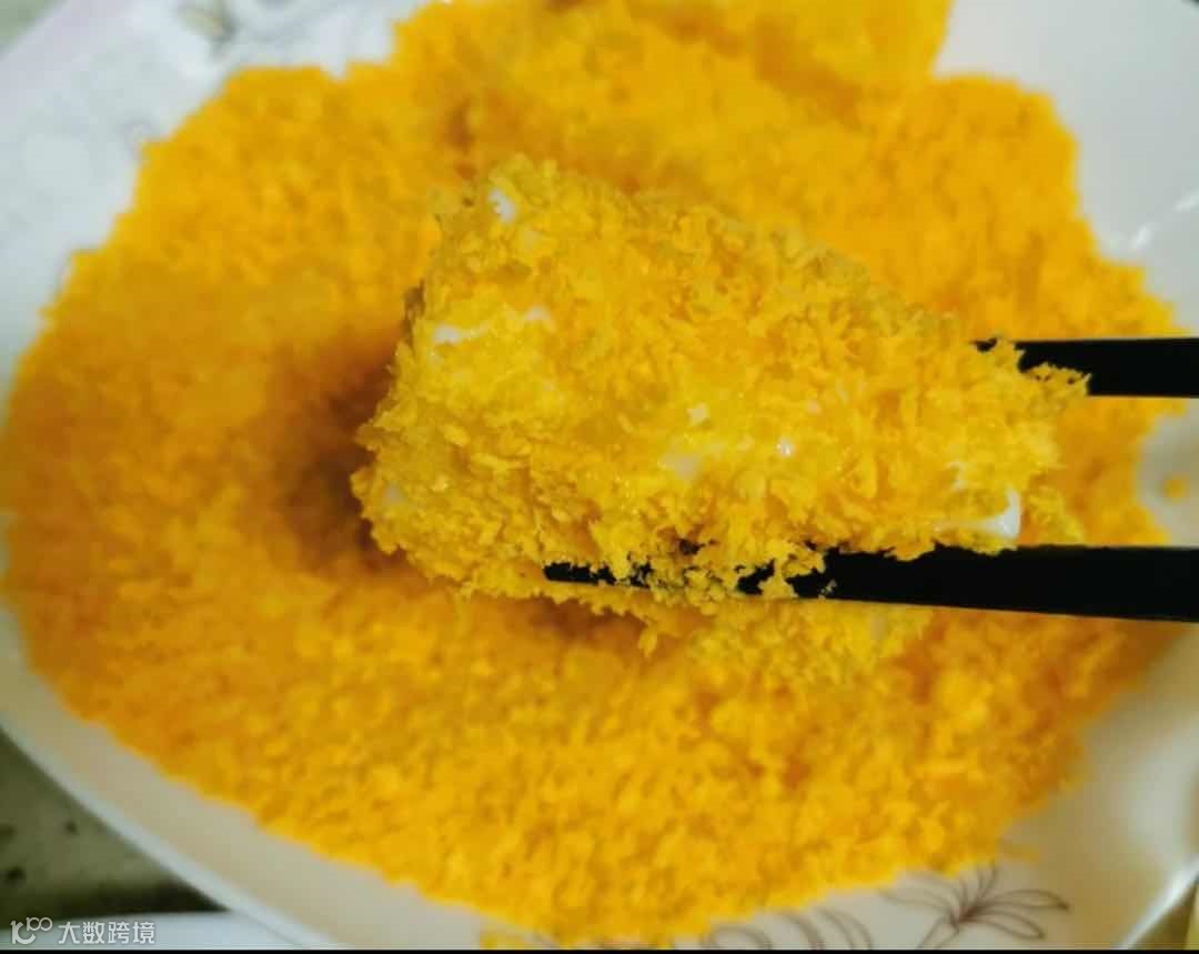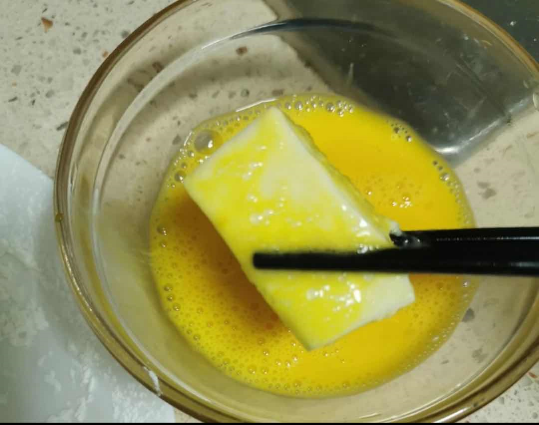 将定型后的奶糊进行切块裹上鸡蛋液和面包糠, 鸡蛋液是否需要加糖加多少糖, 我们可以对比加不同的糖以及是否加糖以后最后的口味对比。