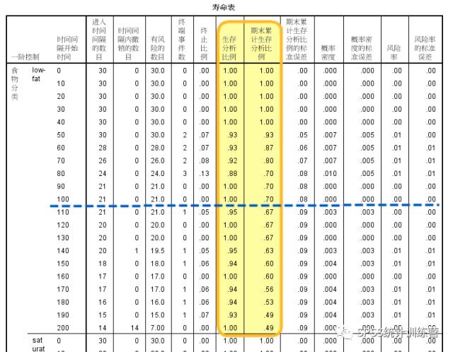 怎么看呢?小兵建议主要参考“生存分析比例”和“期末累计生存分析比例”这两列的结果。