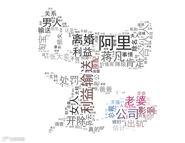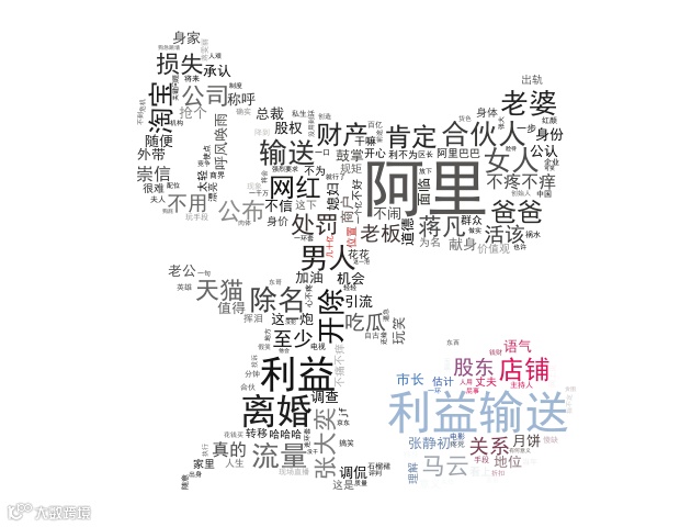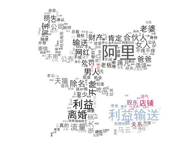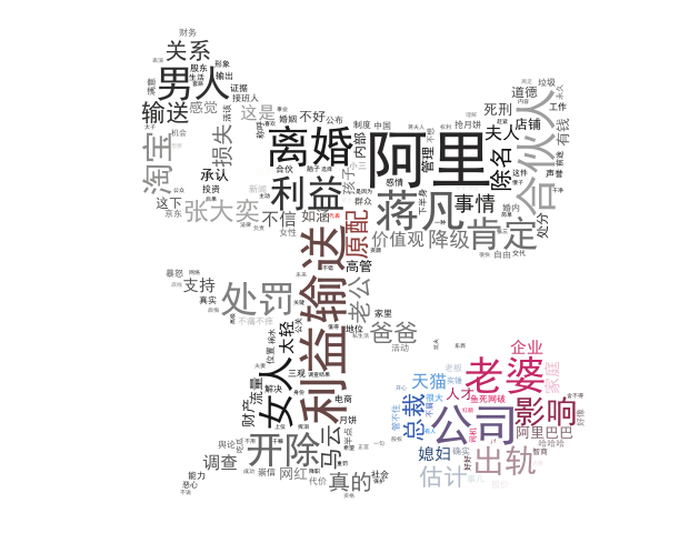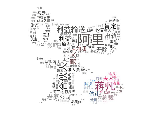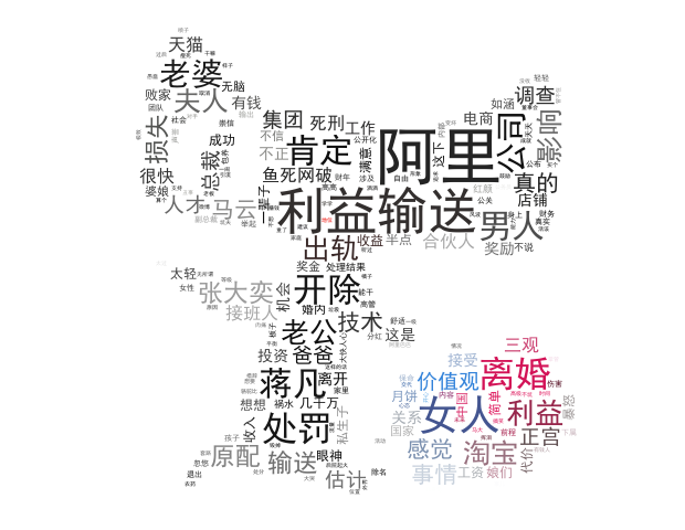 通过这张词云图可以看出,大部分吃瓜群众关注基本上都是利益输送、离婚、合伙人、老婆等。