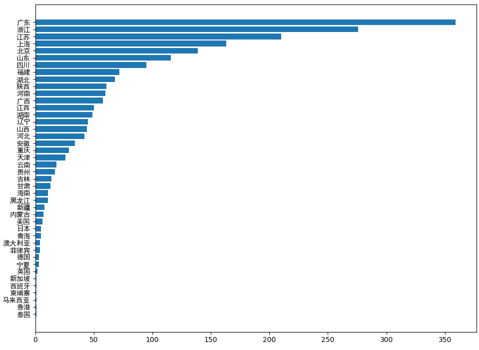 通过这张图可以得知吃瓜群众来自地区TOP3的为广东、浙江、江苏。这回浙江网友扳回一局。那这些地区的网友评论是否有区别呢?