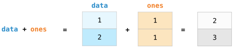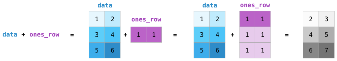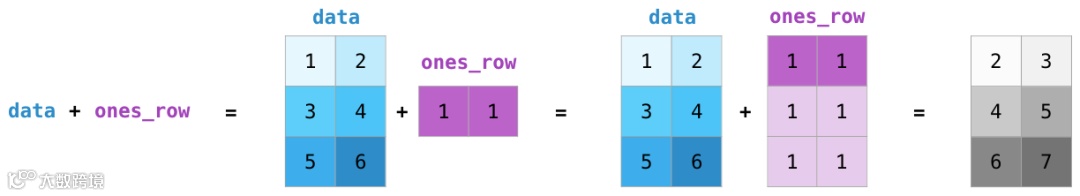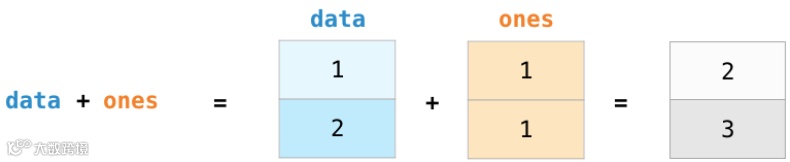 将它们按位置相加(即每行对应相加),直接输入 data +ones即可;