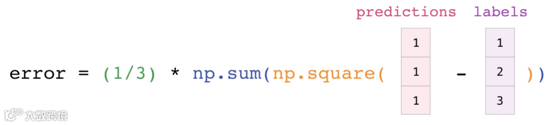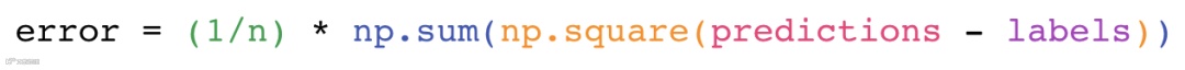 实现可用于矩阵和向量的数学公式是 NumPy 的关键用例。这就是 NumPy 是 python 社区宠儿的原因。例如均方差公式,它是监督机器学习模型处理回归问题的核心: