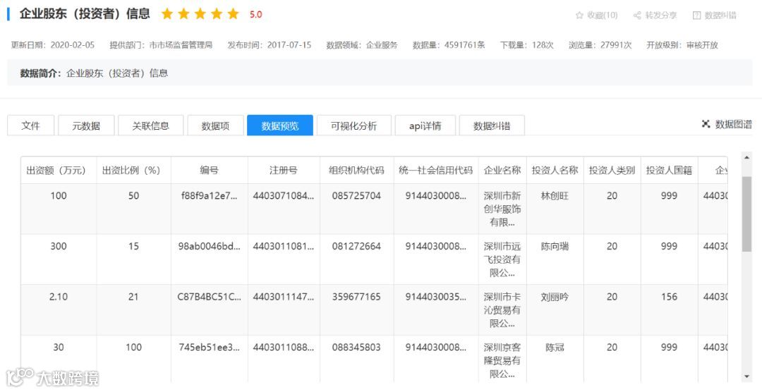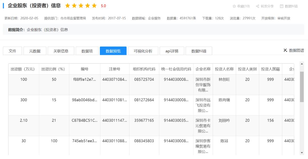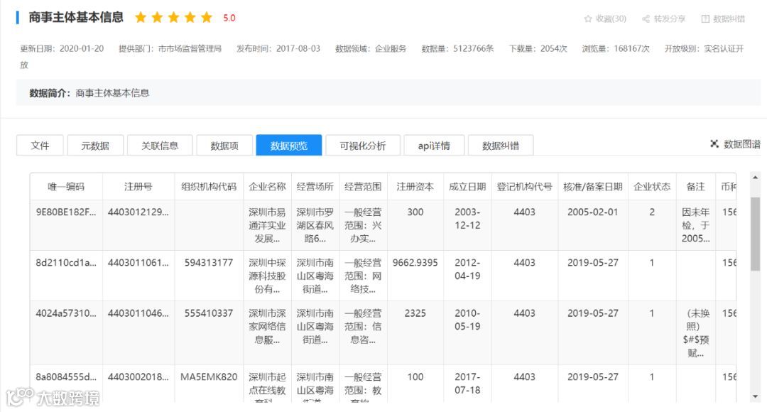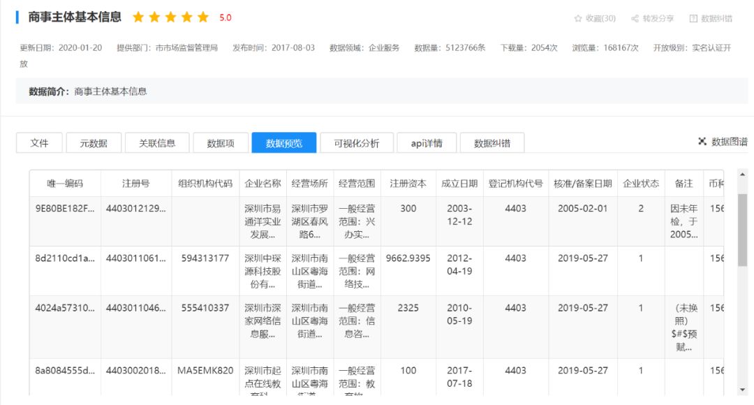 我们再看看热门数据:商事主体基本信息