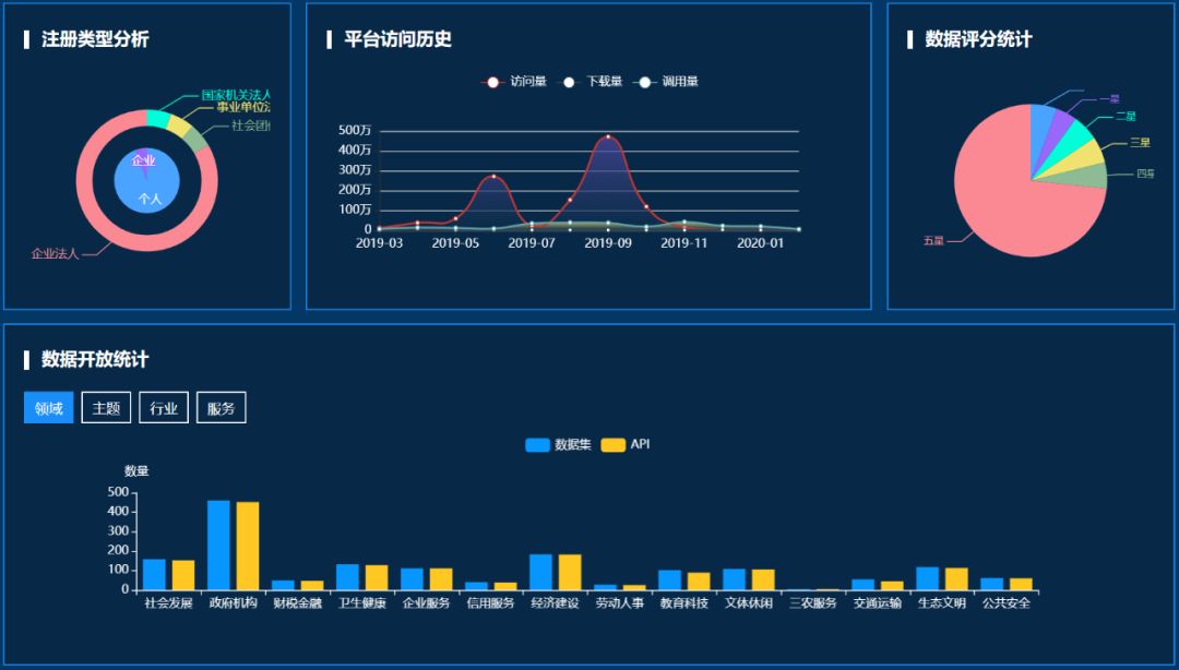 网站还对平台的访问、数据的调用、下载进行了统计