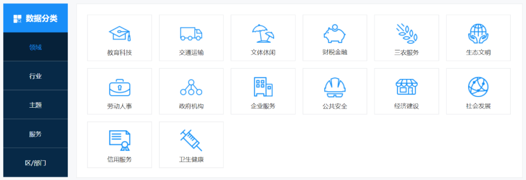 提供了教育科技、交通运输、文体休闲等领域的数据下载,如下所示