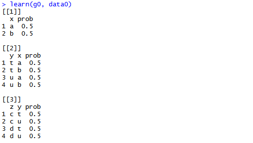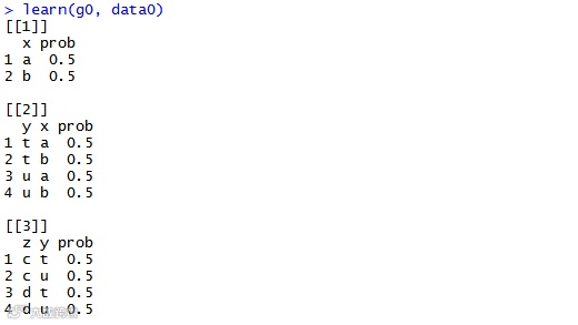 接着,就可以使用最大似然估计的结论,来计算出这个概率图模型中的所有参数了,代码如下所示: