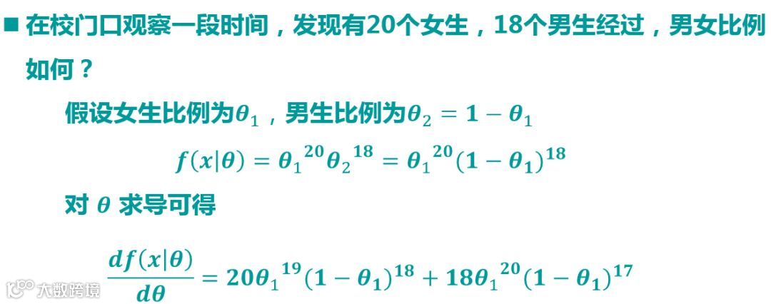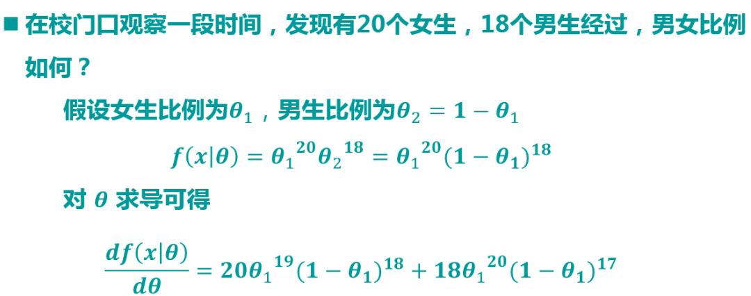 不熟悉理论的同学,肯定觉得这些公式很头大,没关系,我们就用上面男女生比例的例子,来给大家演算一下,最大似然估计的应用。