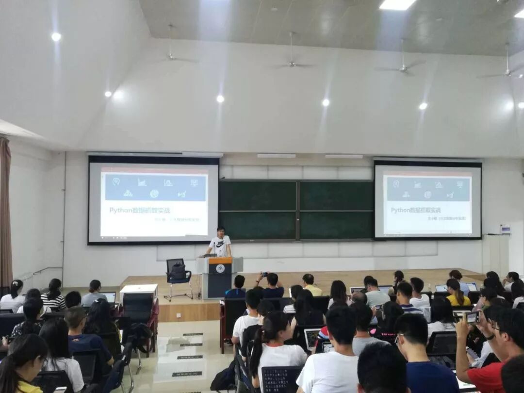 这个讲座,是去年贵州大学的延续,有幸和中山大学和山东大学的几位老师再次一起同台授课,真的是难得的机会,我在这次的讲座中,主要分享了《Python数据抓取实战》以及《Python机器学习与数据可视化》的两个主题,看起来大家还是对这个技术非常感兴趣的。