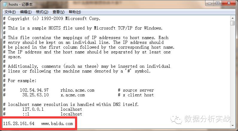 首先我们说一下原理,什么是hosts,非常简单,我们来做一个实验。