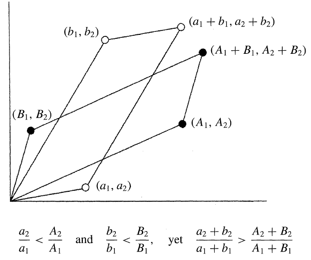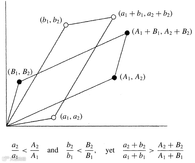 这个就是辛普森悖论的图形化解释,非常直观清晰。