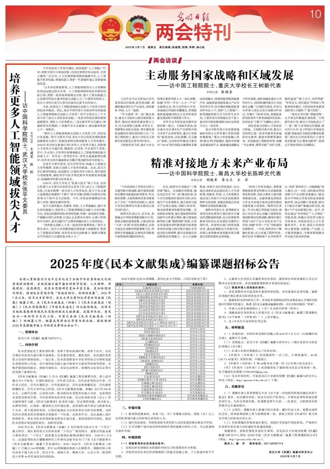 “培养拔尖创新人才是一流高校的重要使命。” 张平文委员表示,“武汉大学将继续锚定国家重大战略需求,聚焦人工智能前沿领域,培养具有突出创新能力、能够支撑高水平科技自立自强的复合型人才。”