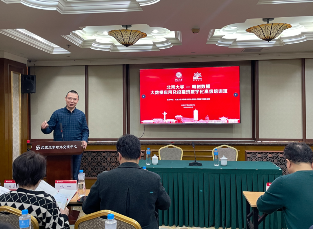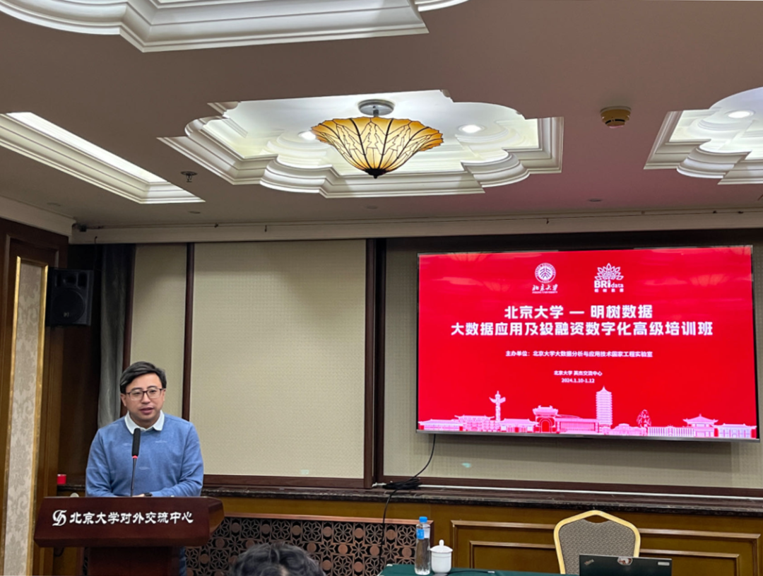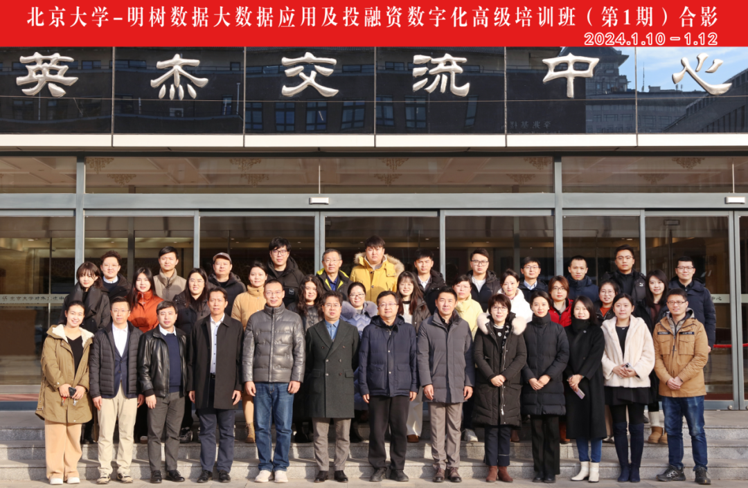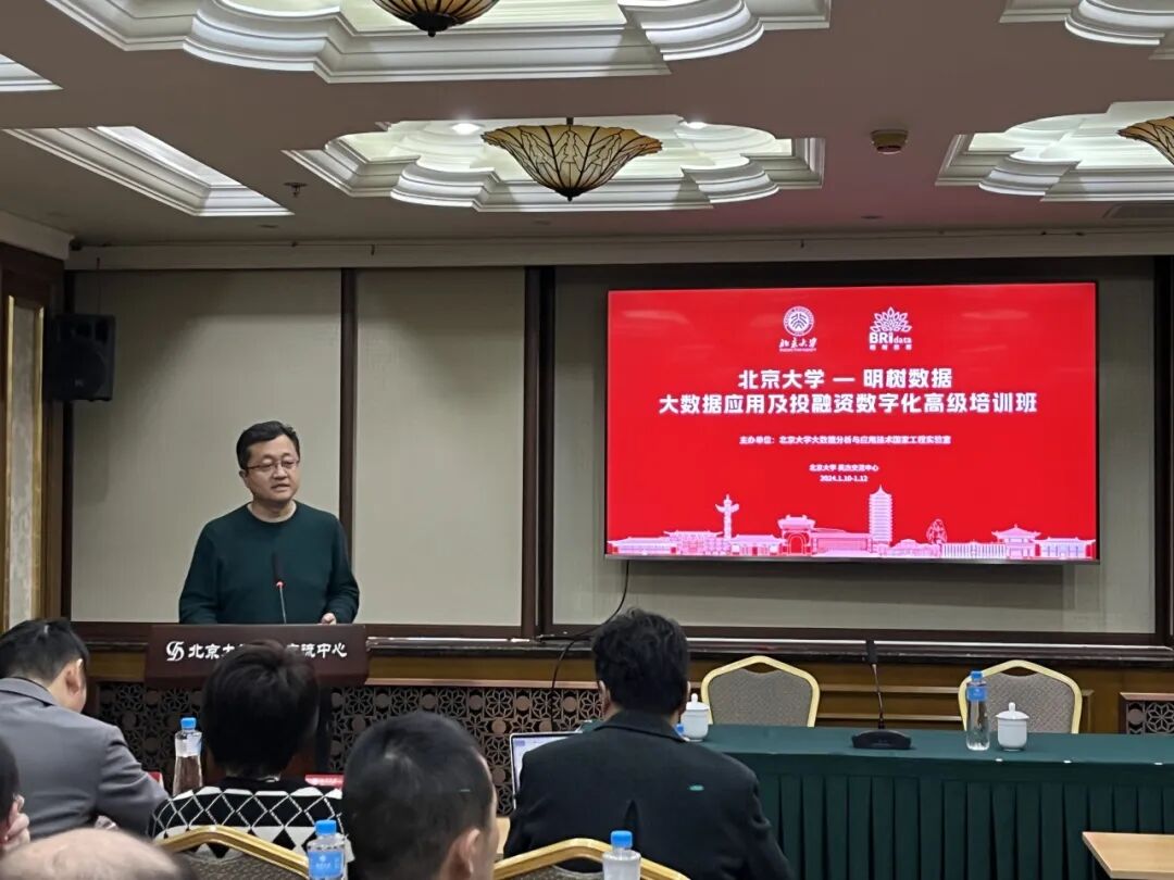 为提升北京明树数据科技有限公司(以下简称“明树数据”)员工对数据要素的认知,深刻把握大数据应用与投融资数字化的发展路径,2024年1月10日-12日,由北京大学大数据分析与应用技术国家工程实验室(“以下简称“实验室”)举办的“北京大学-明树数据大数据应用及投融资数字化高级培训班(第1期)”在北京大学英杰交流中心成功举办。本次培训邀请了北京大学智能学院研究员、长聘副教授、实验室常务副主任袁晓如,北京大学中国社会与发展研究中心主任、社会学系教授、数字治理研究中心主任邱泽奇,北京大学工学院党委书记、长聘教授宋洁,北京大学博雅特聘教授、北京大数据研究院副院长刘云淮,实验室特聘研究员徐克付、副研究员王娟、算法专家黄晶等专家学者进行授课。明树数据中层以上管理、技术人员等30余人参加了培训。
