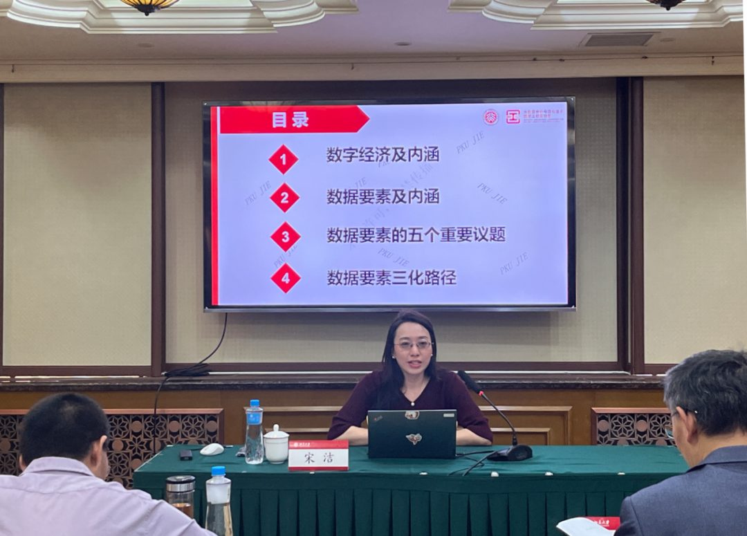 宋洁教授从数字经济与数据要素深度认知,数据的信息、权属、价值、安全、交易,产业数字化和数字产业化,数据要素流动等方面介绍了“数字经济与数据要素”,使学员们对数字经济的内涵和外延有了更全面的理解。