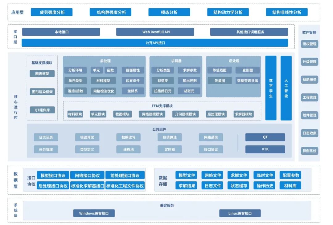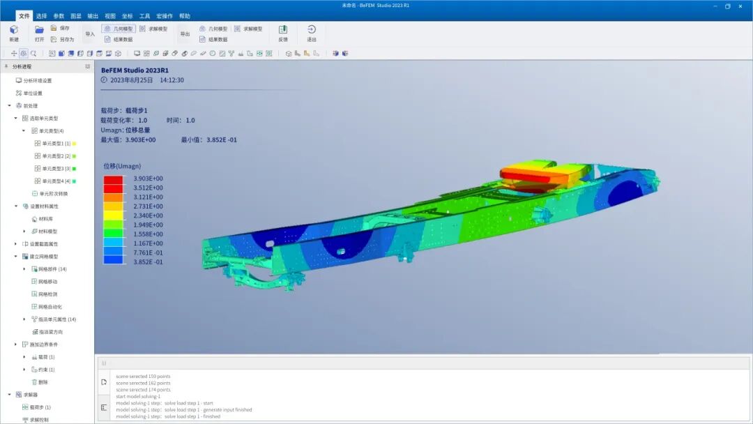 依托北京大学数学科学学院雄厚的基础研究实力,该研发团队的使命是响应时代呼唤,将“胡张元算法”、基于AI的算法和适应新形势的线性代数方程组求解算法等一系列新一代算法转化落地,开发让用户更满意的新一代有限元结构仿真分析软件。经过近两年的潜心攻关,已经研发出了以“胡张元算法”为底层求解器核心算法的有限元软件北达飞易。该软件拥有自主知识产权,具有面向结构力学仿真分析领域的模型处理、属性指派、边界条件处理、求解和后处理等功能模块,可实现高精度仿真与数值求解,能满足新时代先进制造和基础设施行业对工业软件的需求。