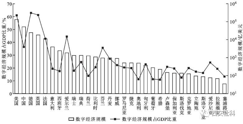 注:1.中美欧广义数字经济规模数据来源于中国信息通信研究院发布的《全球数字经济新图景(2020年)》;