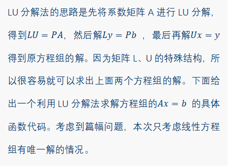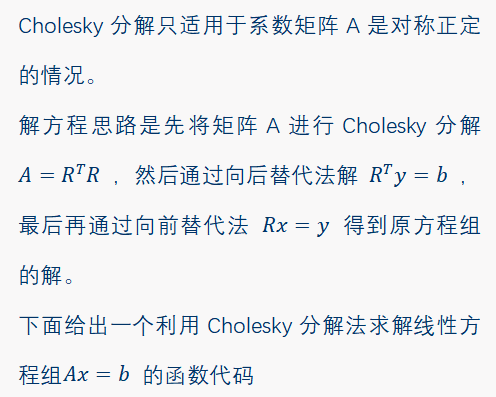利用矩阵分解来求解线性方程组,可以节省内存和计算时间,因此它也是在工程计算中最常用的技术。如何利用LU分解、楚列斯基(Cholesky)分解来求解线性方程组?