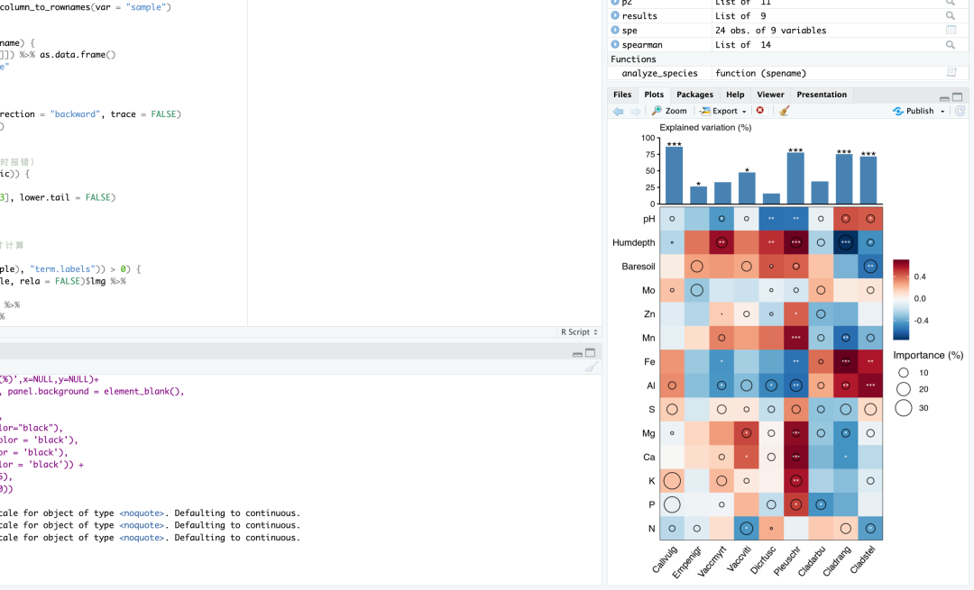 因此,本次将对这一流程进行系统性重构与优化,在保留原有分析框架的基础上,完善模型构建、空模型处理、统计显著性提取与热图可视化等关键环节,使其逻辑更加清晰、结构更具模块化,适用于更大规模、更复杂的生态组学与环境因子分析场景。