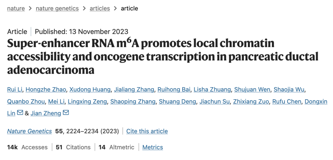 Li, R., Zhao, H., Huang, X. et al. Super-enhancer RNA m6A promotes local chromatin accessibility and oncogene transcription in pancreatic ductal adenocarcinoma. Nat Genet 55, 2224–2234 (2023). https://doi.org/10.1038/s41588-023-01568-8