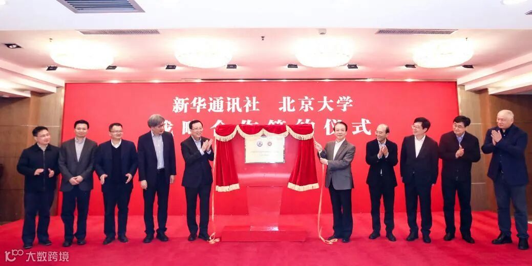 新华社副社长刘思扬和北京大学副校长张平文代表双方签订战略合作协议。何平与郝平共同为“媒体融合生产技术与系统国家重点实验室”揭牌。