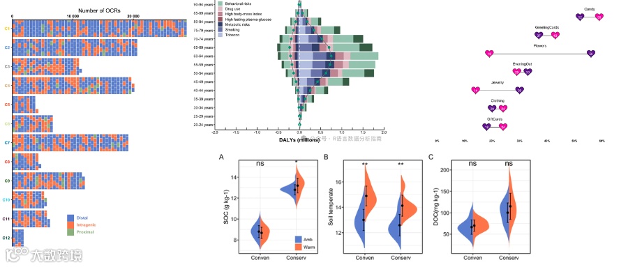❝很多读者用R语言只能画出最基础的柱状图、折线图、箱线图……。但如果想让你的论文图表在视觉上更专业、更有说服力,就需要迈向 可视化进阶。
