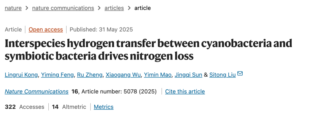 Kong, L., Feng, Y., Zheng, R. et al. Interspecies hydrogen transfer between cyanobacteria and symbiotic bacteria drives nitrogen loss. Nat Commun 16, 5078 (2025). https://doi.org/10.1038/s41467-025-60327-x