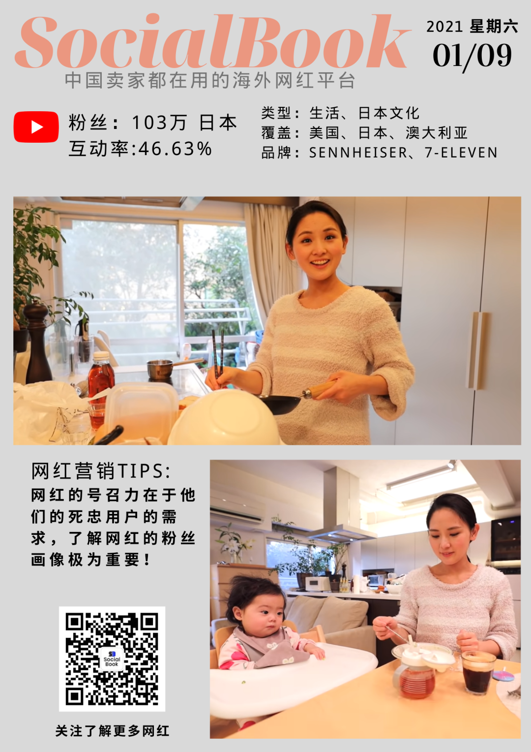这位博主的内容总是表达着生活的日常内容,日本文化的点点滴滴,平实又很吸引人。快来SocialBook链接你需要的海外网红资源吧!