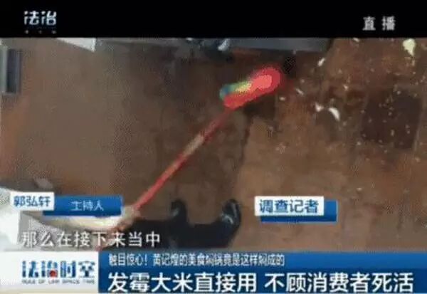深圳法治频道《法治时空》记者卧底黄记煌之后才发现它的卫生问题严重:后台成苍蝇乐园,发霉大米直接用,大厨徒手捏苍蝇。