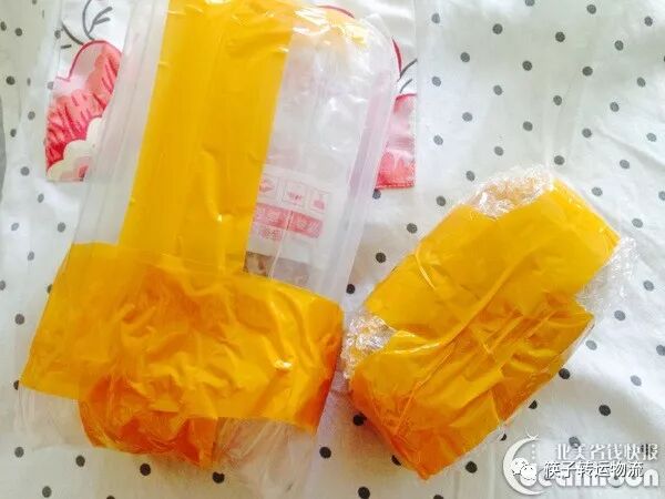 内里红色胶带是淘宝卖家的包装,黄色胶带和缓冲包是筷子的加固