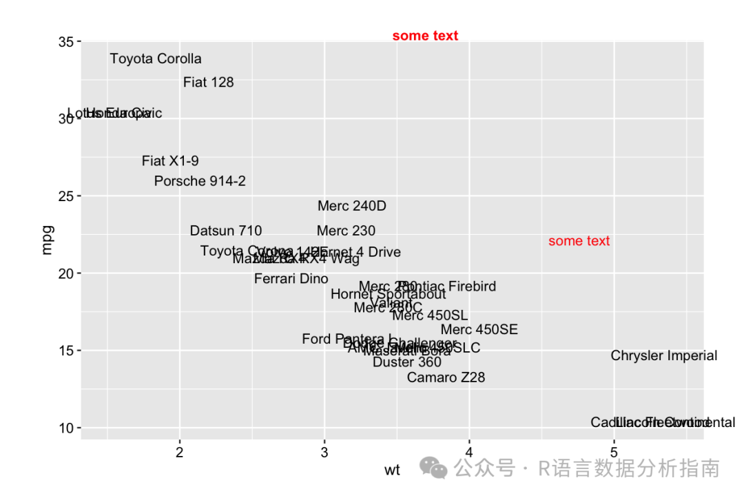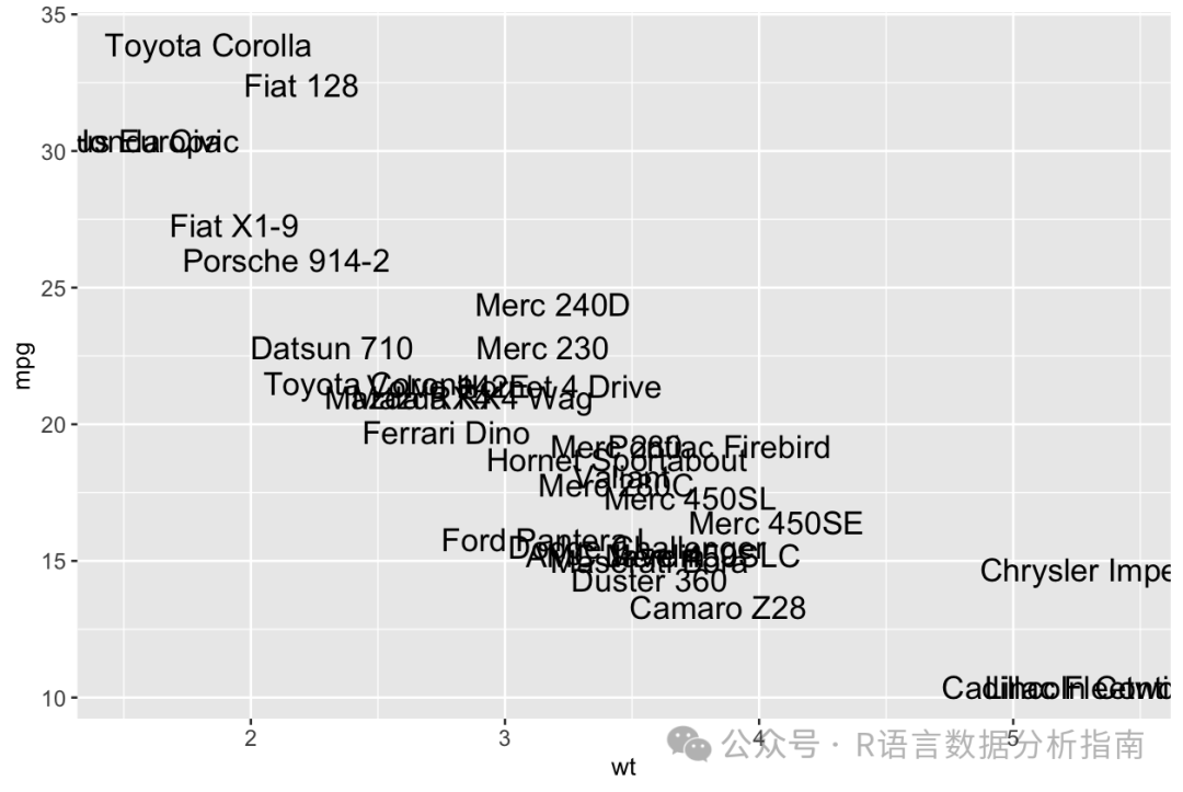 p <- ggplot(mtcars, aes(wt, mpg, label = rownames(mtcars)))