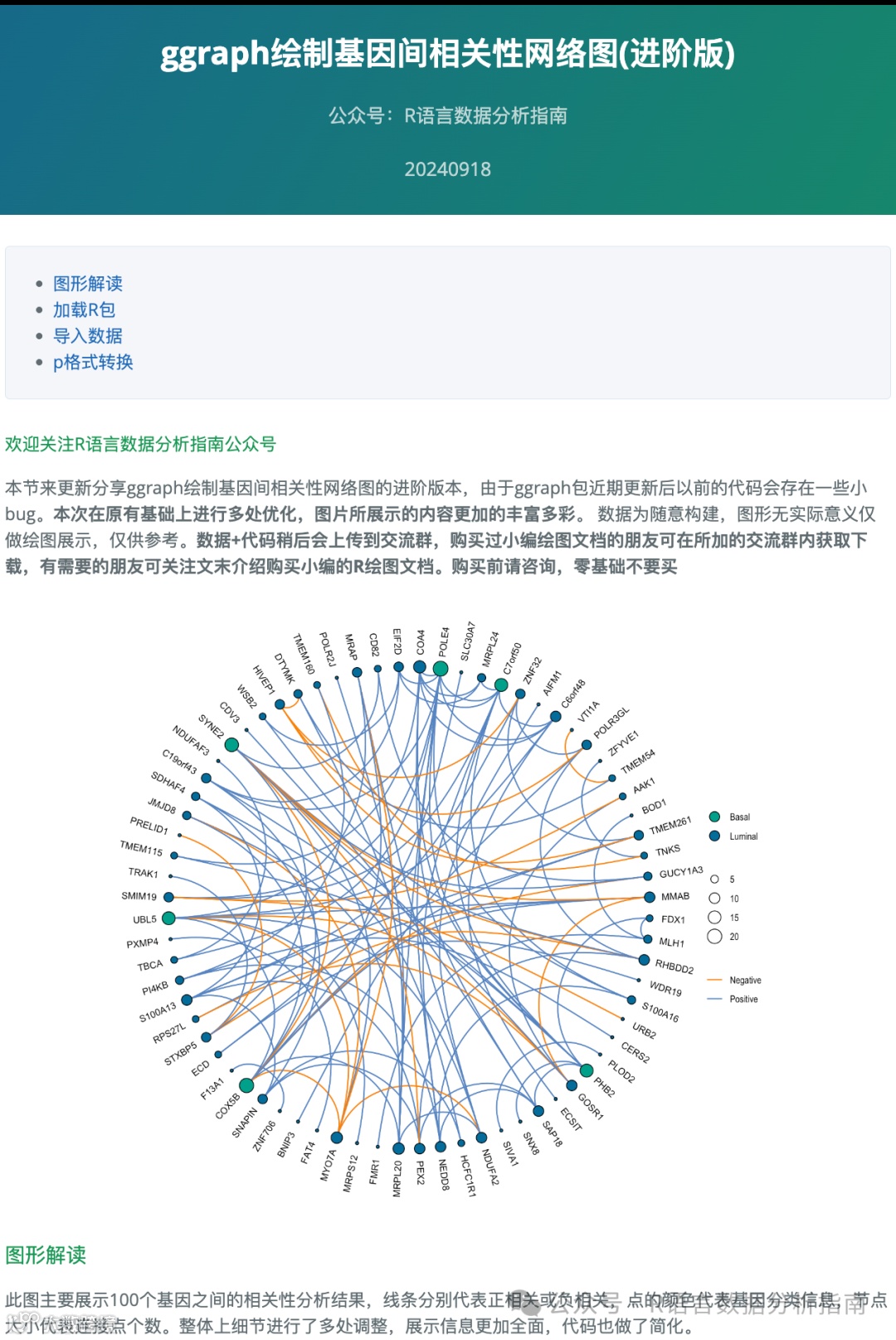 所选案例图均属于个性化分析图表完全适用于论文发表,内容异常丰富两年累计发布案例图200+,2024年6月起提供html版注释文档更加直观易学。文档累计上千人次购买拥有良好的社群交流体验。R代码结构清晰易懂,为防止中文乱码提供单独的注释文档