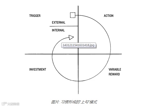 “上勾”就是这种方法论之一,由硅谷创业者 Nir Eyal 提出。这是一套简单的步骤,但是在大量的网络产品服务中都可以见到,心理学和神经科学领域的相关理论研究也支持这一方法。“上勾”其实就是 Facebook、Google、Instagram、Pinterest、SnapChat、Twitter 以及其他所有标志性消费互联网产品背后的“魔法”。这种方法让用户进入一个不断重复的循环,将试探性的行动变成无法抗拒的冲动。