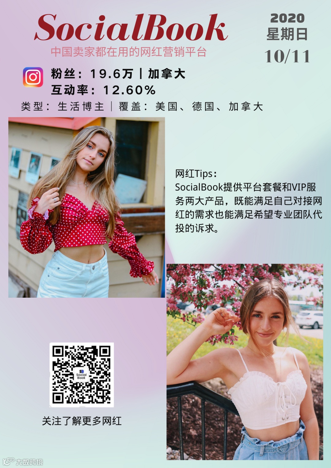 这个来自加拿大的可爱漂亮的博主深受粉丝喜爱,小编曾经看到多个女性博主都有推荐过她,大家都表示非常欣赏这位可爱博主的频道。她的IG频道,非常好看,因为图片张张都很美。作为一个颜值高,又非常有镜头感的妹子,轻轻松松就让粉丝们享受到了美图。她热爱分享日常生活,好物推荐及日常的穿搭。小编也很喜欢她的分享,强烈推荐一下~~~